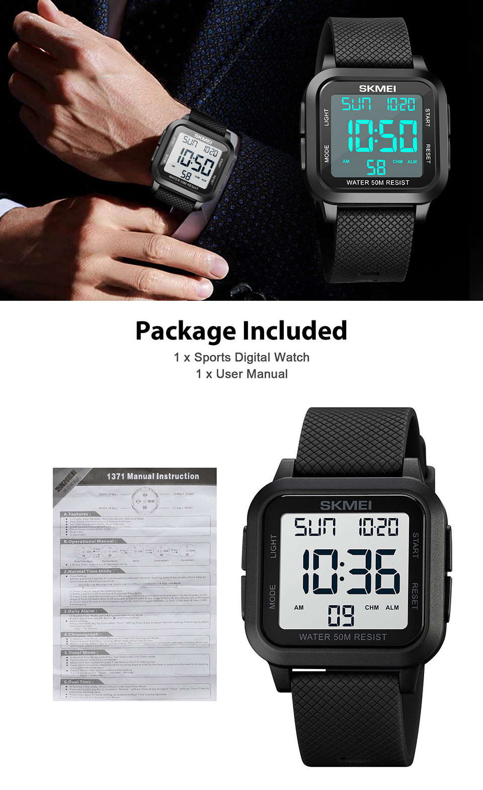 - Features: Alarm, Backlight, Chronograph, LED Display, Luminous Dial, Multifunction, Shock-Resistant, Water-Resistant
