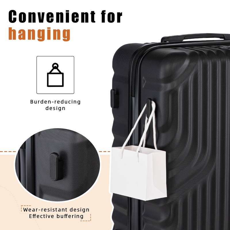 - 【 Premium Materials 】The hardshell suitcase set is made of more durable and lightweight high-quality ABS material,which is more impact-resistant. The side hook design allows bag-shaped items to be hung without the need to carry them by hand