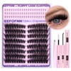 Eefofnn Fluffy Lash Clusters Kit Volume Eyelash Extension Kit 80D Individual Lashes Bottom Lashes DIY Cluster Eyelash Extensions Kit Bond and Seal Tweezers Cat Eye Lashes Extensions Kit