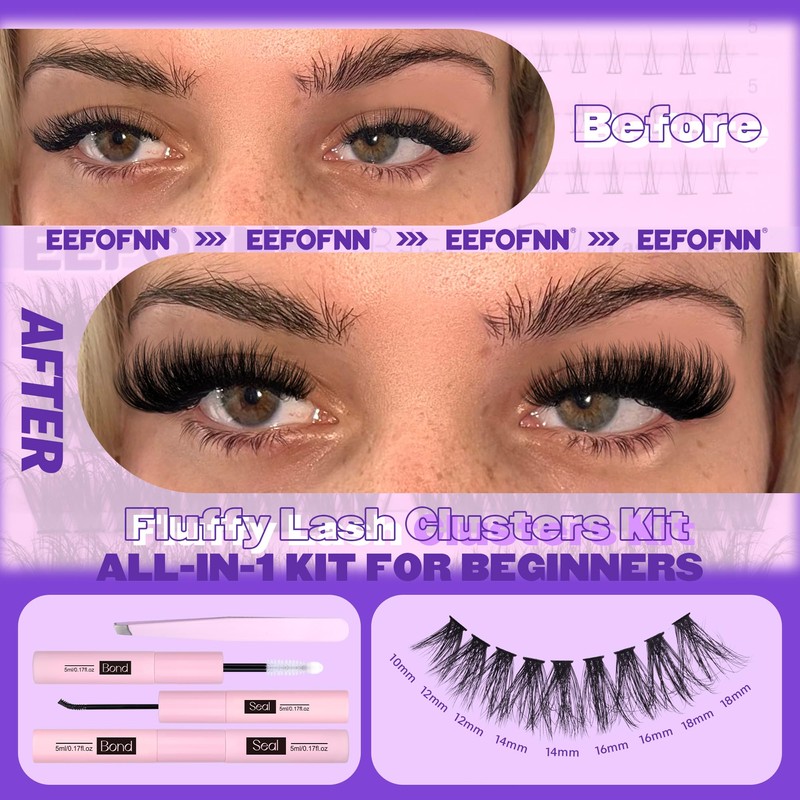 - Eefofnnโ s Tips: Natural eye lash clusters and bottom lashes are suitable for daily life, parties and travel. If you have any new ideas about fluffy eyelash clusters kit and mink lash clusters, please tell us in time