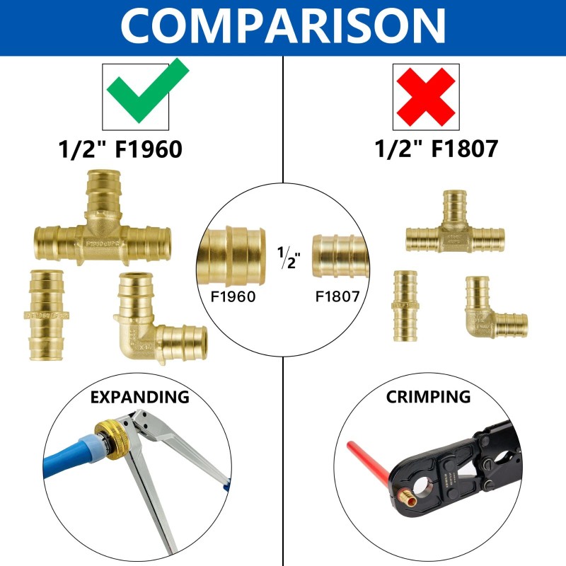 EEIELD EFIELD 15 PCS 1/2" PEX-A Expansion Brass Fittings Elbow,Coupling