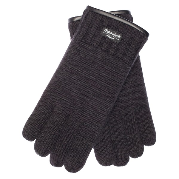 EEM Men's knitted Thinsulate gloves FYNN with thermal lining, warm 100% wool, winter, black, size S