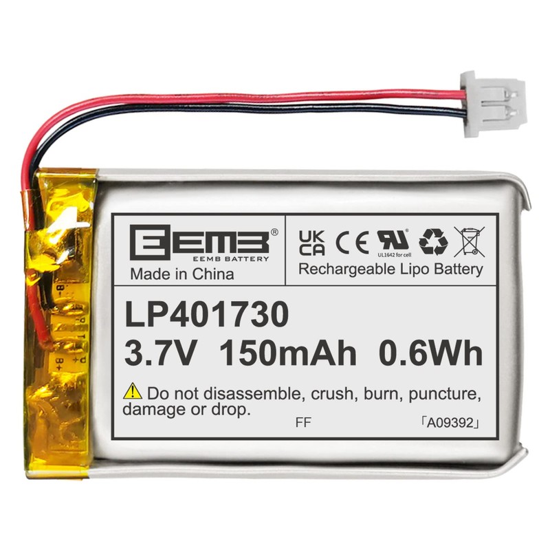 EEMB Lithium Polymer Battery 3.7V 150mAh 401730 Lipo Rechargeable Battery Pack with Wire Molex Connector for Speaker and Wireless Device- Confirm Device & Connector Polarity Before Purchase