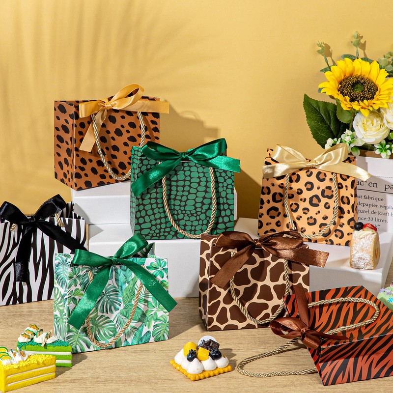 - Vibrant Jungle-Themed Aesthetic: Experience vibrant giraffe print gift bags and lush foliage patterns that create a wild, energetic atmosphere. Each bag combines pink accents and white handles to deliver luxury animal print packaging for presentations