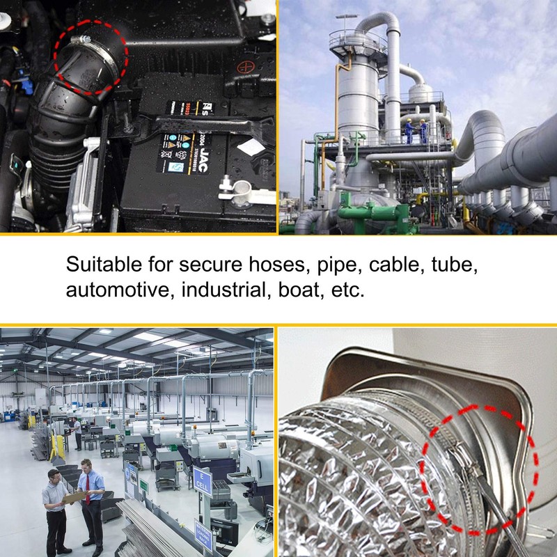 • Easy to use: Just loosen or tighten the screw of hose clips by a screwdriver to adjust the size, attach hoses to the fitting tightly. Can be applied to secure hoses, pipe, cable, tube, automotive, industrial, boat, etc.