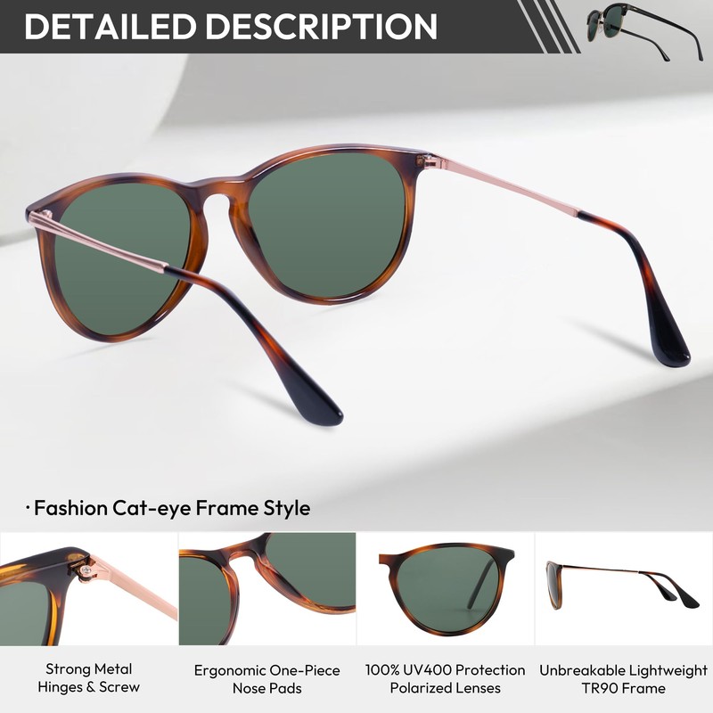 EFE Polarized Sunglasses for Men Women Classic Unisex Eyewear with UV400 Protection Retro Style for Women Men Driving, Traveling, Fishing,Hiking Green
