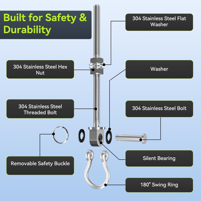 - 【Sturdy and Durable - Rust and Corrosion Resistant】: EFEALL swing hooks are made of high quality stainless steel, rust and corrosion resistant and suitable for various outdoor weather conditions. The load capacity is up to 680 kg, with stable and secure construction.