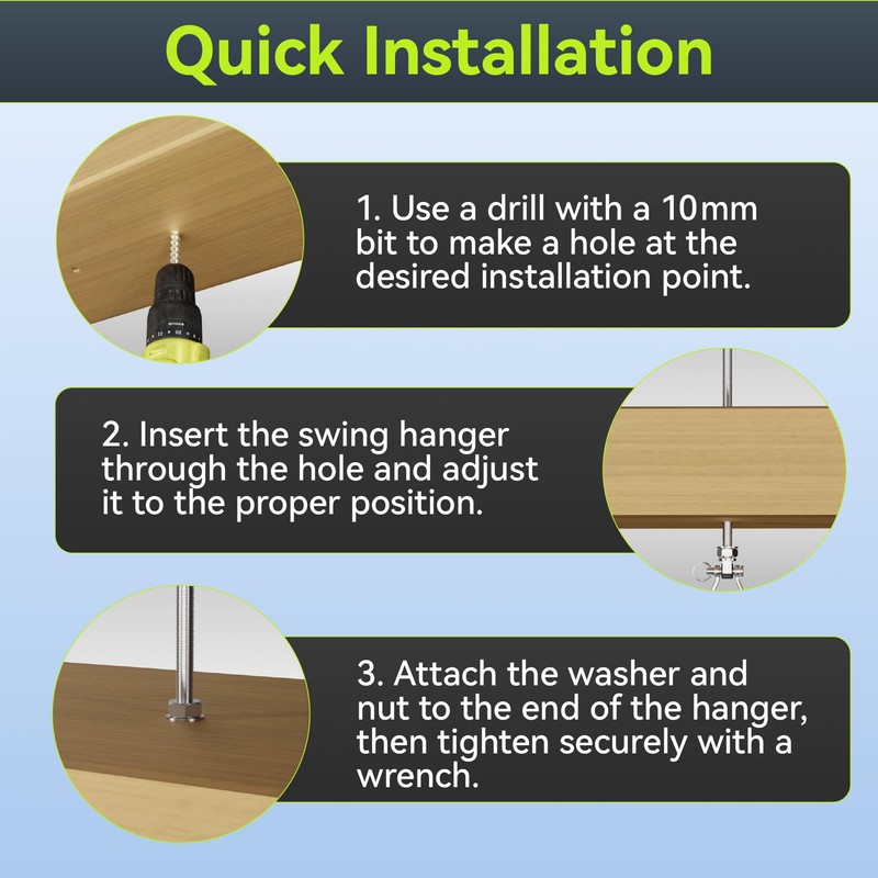 【Secure Fixing】: The swing hooks pass through the beams and fixed on the back with washers and nuts - a stable installation without wobbling.