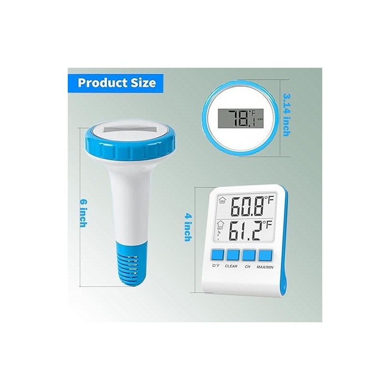 - 【Upgraded High Accuracy Pool Thermometer】: This digital pool thermometer features high-precision measurement capabilities, ensuring accurate temperature readings within a range of 32°F to 122°F, with an accuracy of +/-1.8°F. The swimming pool thermometer floating easy read design allows you to effortlessly monitor your pool temperature, ensuring you enjoy your swimming experience within the perfect temperature range. This floating pool thermometer guarantees precise and reliable data, making it an essential tool for maintaining your pool's optimal temperature.