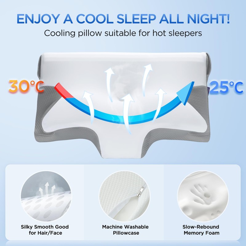 - [VERSATILE CONTOUR PILLOWS] The special hollow design could ensure smooth breathing to reduce snoring. With 2 different heights and shapes to choose from, it is perfect for different sleeping postures, such as side, back, and stomach sleepers