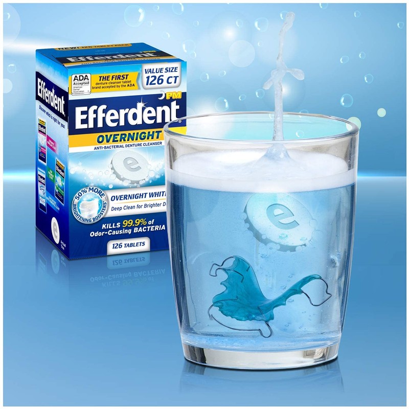 Efferdent Overnight Whitening Denture Cleanser Tablets give you a deep clean