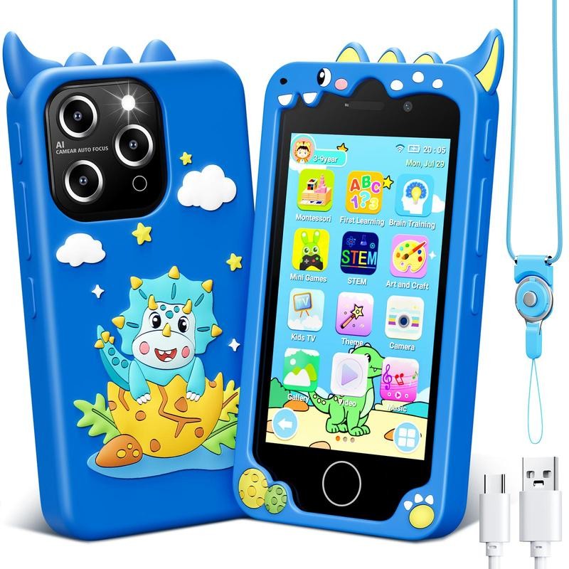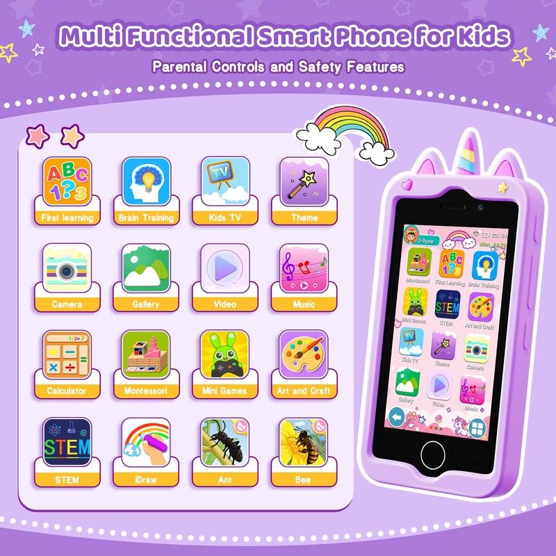 - Comprehensive Learning and Fun Modules: Designed for kids aged 1-9, the kids phone toy includes a variety of educational and entertaining modules. It features Language, Numerical, Geometric, Music, and Puzzle Games. Pre-loaded with over 20 kids' apps, including Montessori and STEM series educational apps, AR Fun Game and essential tools like a music player, video player, recorder, calculator, calendar, alarm clock, and stopwatch, it offers a well-rounded learning and entertaining experience.