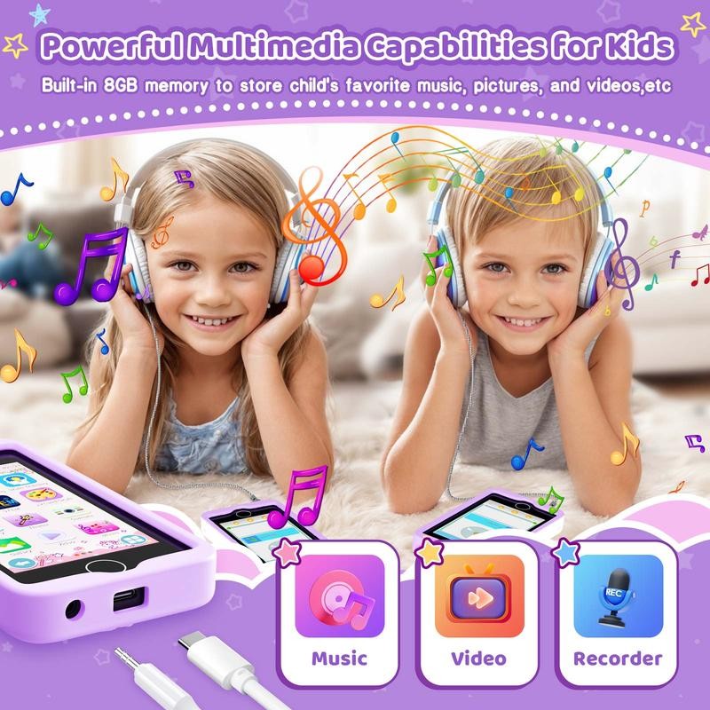 - Long Battery Life, Ample Storage, and Safety: Enjoy extended usage with a built-in polymer lithium battery that ensures at least 4 hours of continuous use. The Kids Cell Phone Toy also comes with 8GB of internal memory, and supports external storage via a microSD card slot, providing ample space for more photos, and videos. Made from food-grade silicone, this Tiny Cam Kids Smart Phone for Girls ensures hygiene and safety for your child.