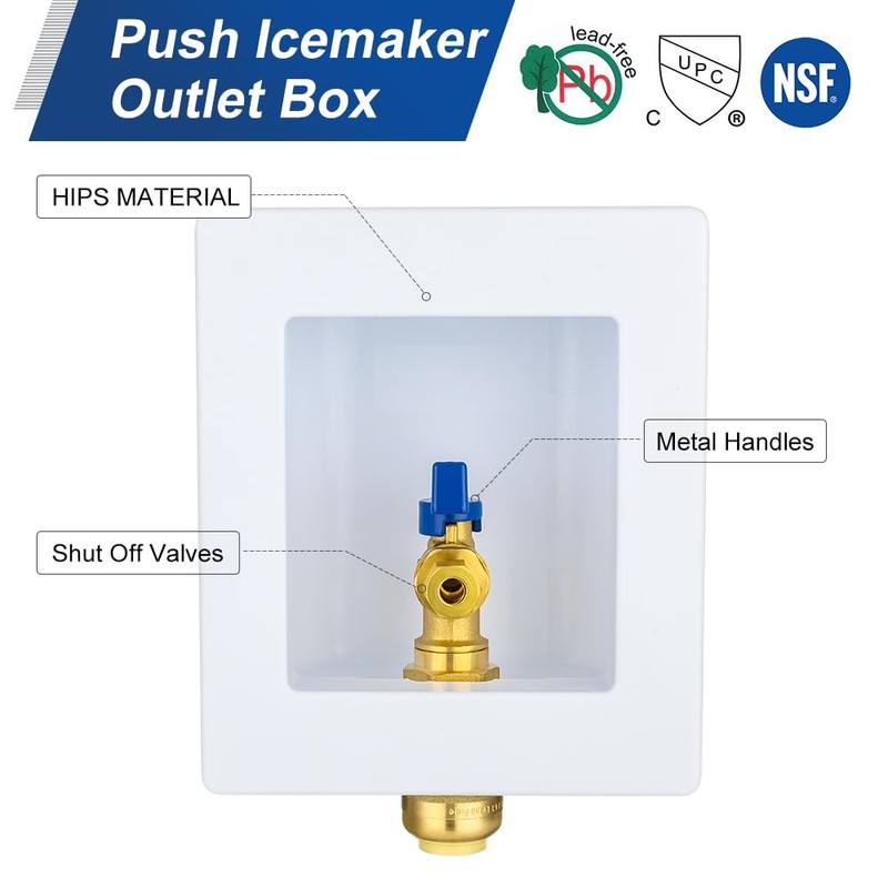 EFIELD Premium Ice Maker Outlet Box,1/2-Inch Push-fit Inlet with Installed 1/4-Turn Brass Ball Valve (Push)
