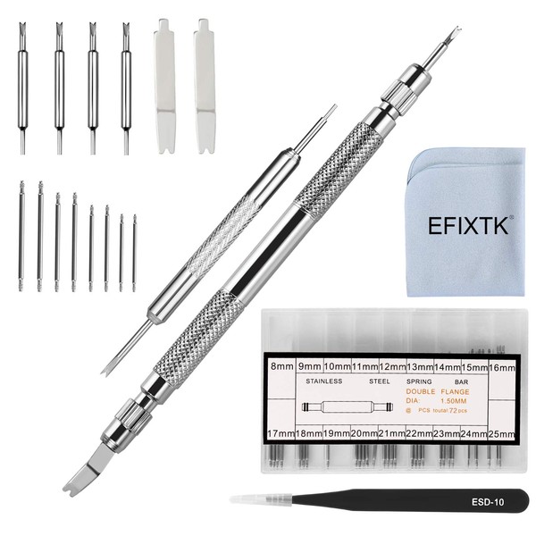 EFIXTK Spring Bar Tool Set with Extra 6 Tips Pins for Watch Wrist Bands Strap Removal Repair Fix Kit,72PCS Extra Watch Pins