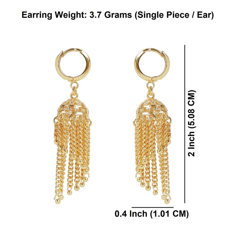 Efulgenz Gold Tone Indian Earrings for Women Hoop Jhumki Jhumka Dubai Style Earring Set Jhumka Hoop Earring with Tassel Indian Bridal Jewelry for Wedding Bollywood Fashion Jewelry, Copper, No Gemstone