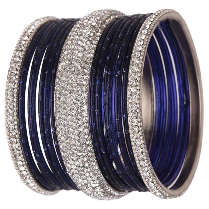 - Bangle Size (Indian) : 2-6, US Size : M (Inner Diameter- 2.37 inch, Inner Circumference - 7.46 inch), Set Content- Total 30 Pieces. (24 metal bangles, 6 cz/crystal bangles). Classic fashion Indian bangle set for women, Metal: Alloy.
