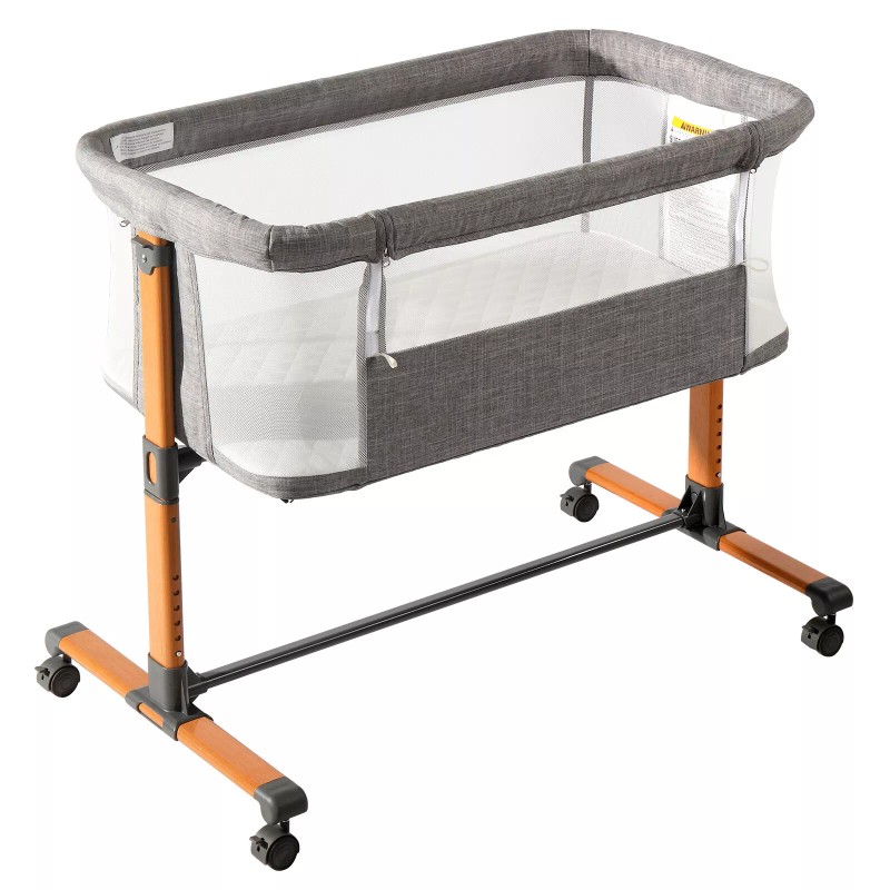 efunmodern Adjustable Bedside Crib Gray Baby Cradle Bed Breathable with Lockable Wheel US