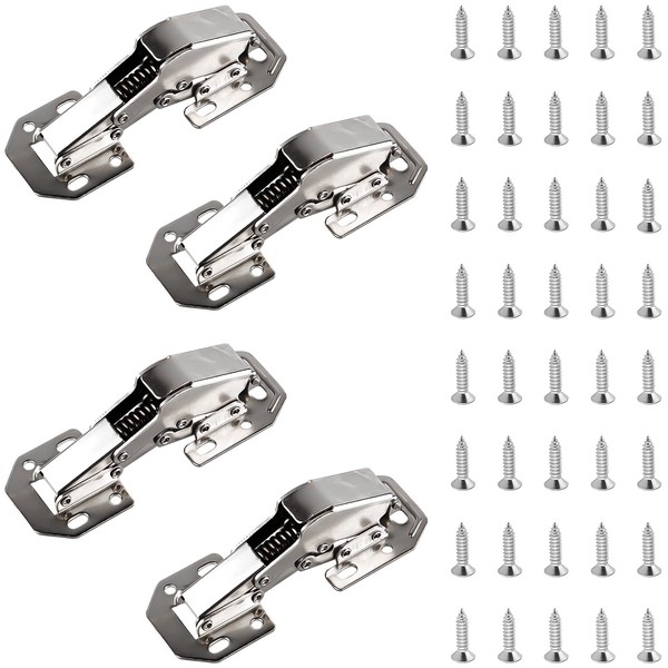 EFUTURETIME 4 x Cabinet Hinges Cabinet Door Soft Close Screw-On Hinge Heavy Duty with Spring 90° Cabinets Furniture Hinge 113 x 43 mm (5 Inches) with 40 Screws with Hydraulic Damping for Cabinet