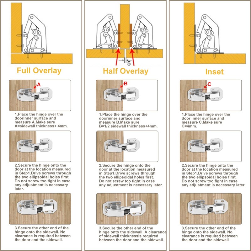 - Features: Unlike normal hinges, this pot hinge with damper only screws need to be screwed into the cabinet door (we supply 80 screws), so no prior large drilling is required, which can damage the cabinet and affect its aesthetics. Suitable for kitchen cabinet doors, drawers, bookcases, wine cabinets, etc. Also suitable for families, hotels, restaurants, schools, office buildings, etc.