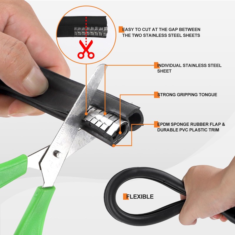 Our universal rubber door seals are made of high quality rubber with excellent durability and anti-aging properties, which ensure long-term use without discoloration or deformation. The seal is precisely cut to the contours of the door and effectively prevents dust, noise and moisture from entering the car.