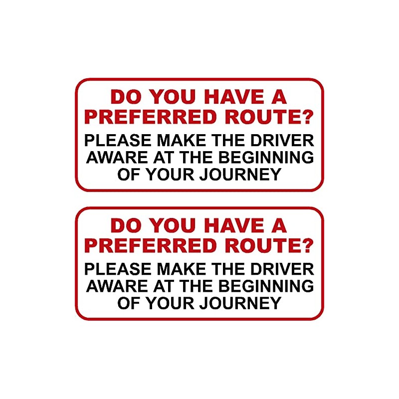 EG 2 x Do You Have a Preferred Route, Vinyl Laminated Waterproof Stickers Decals -Taxi - Minibus - Coach - Hire - Car - Business