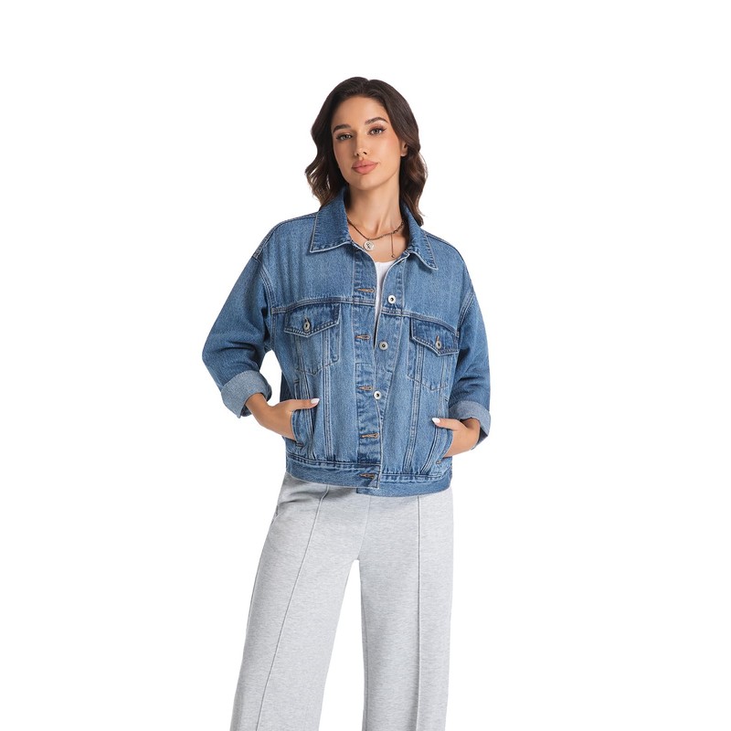 - Featrures: Women's Jean Jacket with Long sleeves, Point collar, Front button placket, Chest patch pockets with button-flap closures, Two side hand pockets