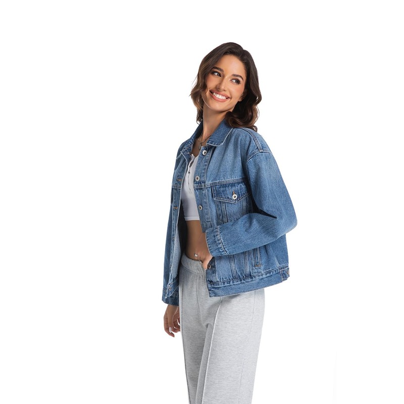 - Featrures: Women's Jean Jacket with Long sleeves, Point collar, Front button placket, Chest patch pockets with button-flap closures, Two side hand pockets