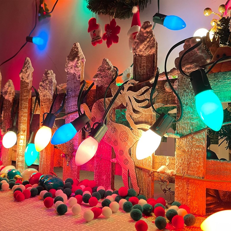 • Widely Used: Multicolor C9 bulbs are a versatile decorating option for both indoor and outdoor use. Outdoor replacement bulbs for string lights cast a warm white glow, perfect for illuminating Christmas trees, roofs, patios, chandeliers, night light, birthdays, candle lamps, salt lamps or other festive occasions where colorful lighting makes all the difference.