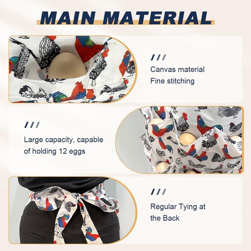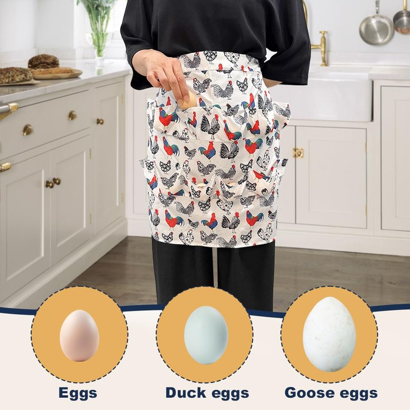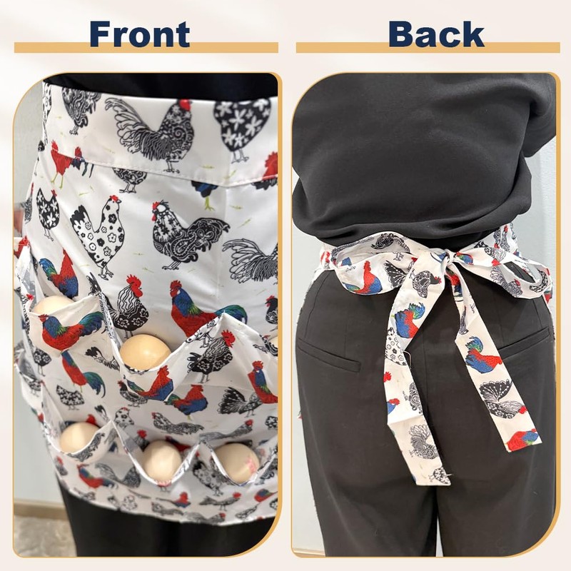 - Hands-Free Convenience: Say goodbye to egg baskets that break eggs with this hands-free egg apron, allowing you to safely collect eggs while multitasking on the farm or in the kitchen.