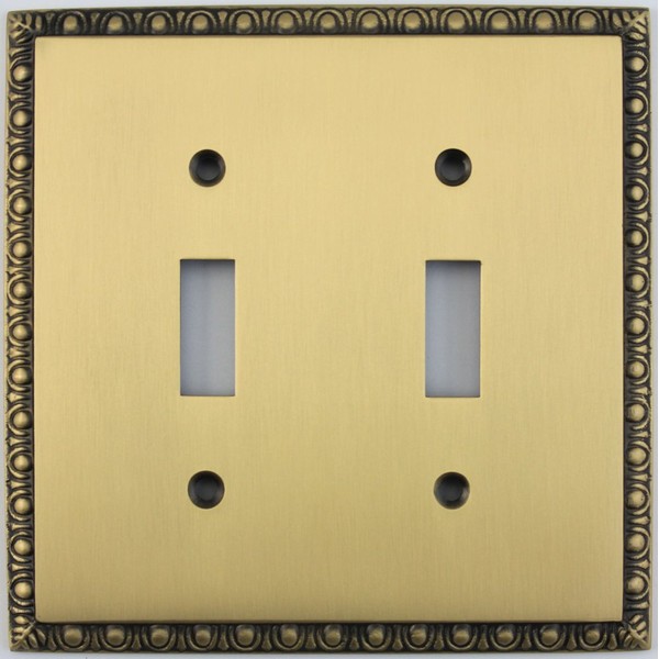 Egg & Dart Antique Brass 2 Gang Toggle Light Switch Plate