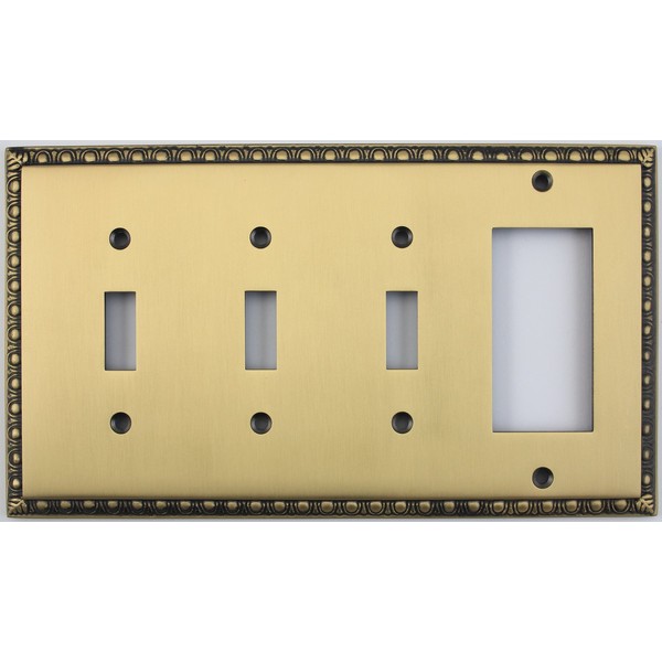 Egg & Dart Antique Brass 4 Gang Combo Switch Plate - 3 Toggle Light Switches 1 GFI Outlet/Rocker Switch