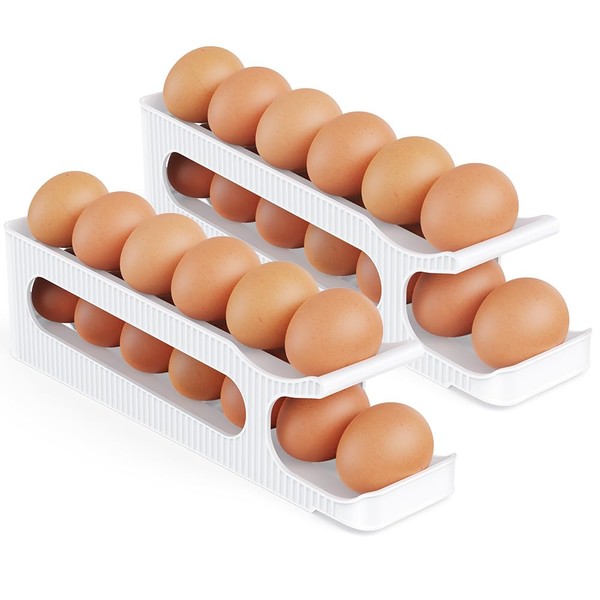 Egg Holder for Fridge, 2 Tiers Auto Rolling Forward (Can not Roll Down), Egg ...