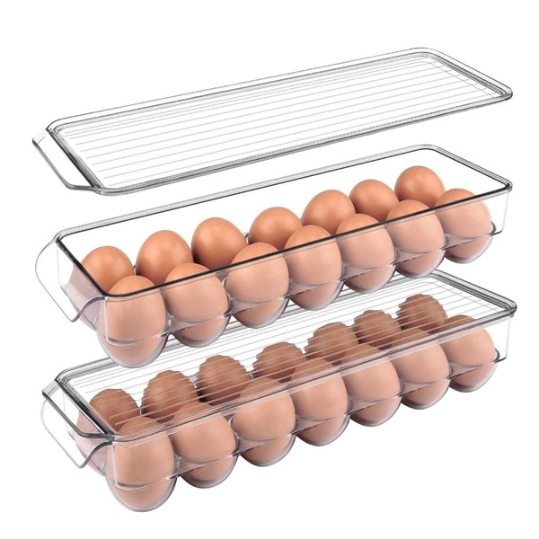 Egg Holder for Fridge with Lid, Egg Containerand for Refrigerator with Front Handle, BPA-Free Clear Plastic 14 Eggs Stackable Tray Storage for Refrigerator. (28 Eggs, Pack of 2)