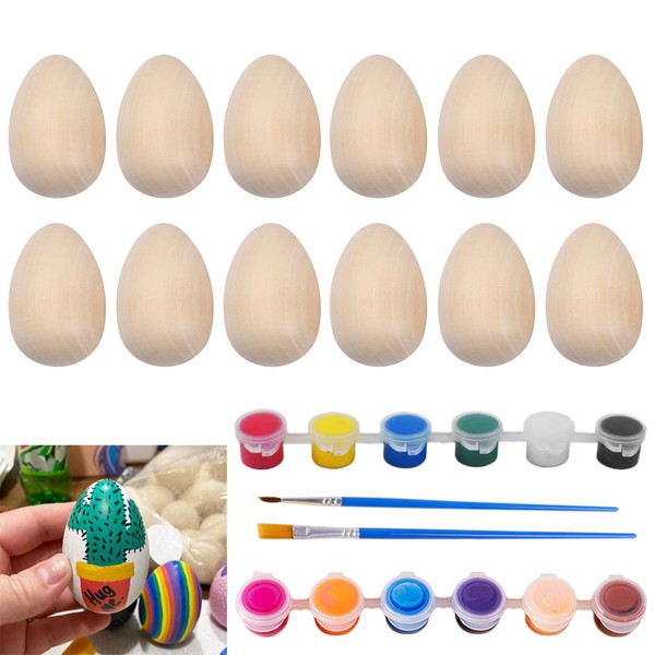 - Innovative Wooden Easter Eggs: Unlock your creativity with 12 (60x40mm) wooden eggs, 1 collection of 12 lively hues, and 2 paintbrushes, perfect for customized Easter egg artistry.