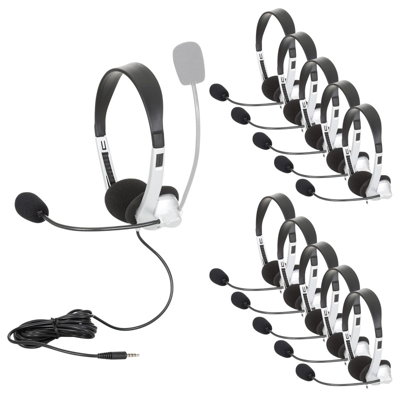 - Includes 10 headsets with resealable bags for easy storage