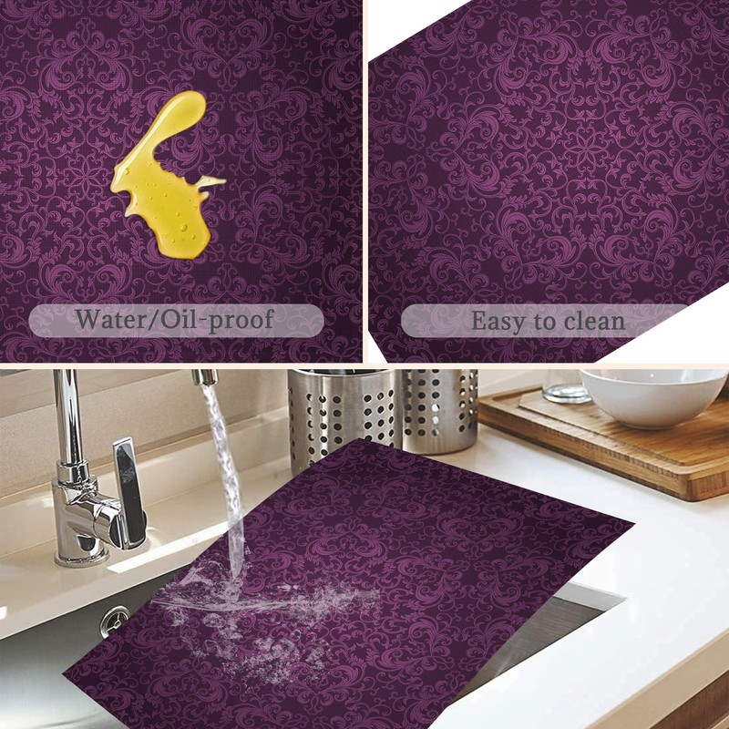 Eggplant Purple Floral Placemats Set of 6,Washable Heat Resistant 12×18 Inch Linen Table Mats Mandala Flower Place Mats for Party Outdoor Dining Décor
