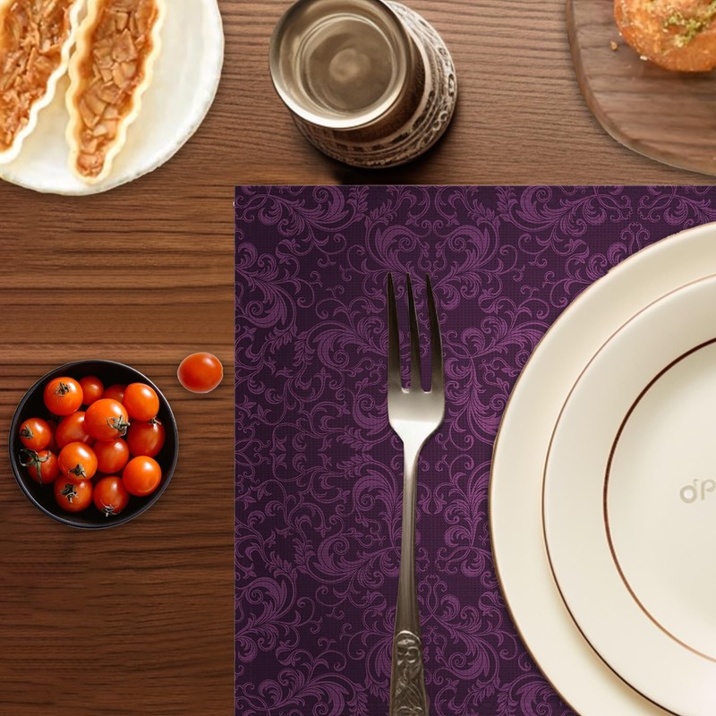 - Set of 6 placemats in bright colors and unique prints for decorating the table and giving the dining room a unique ambience