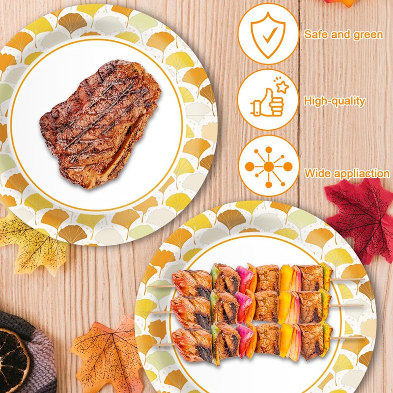 Transform every meal into a special occasion with our 10-inch ginkgo leaf disposable paper plates - the ultimate fusion of beauty and brawn. Designed for hosts who demand both elegance and rebrabibrty, these ginkgo leaf paper tableware pieces feature hand-painted botanical designs that turn ordinary gatherings into Instagram-worthy moments. Made from paper plates heavy duty dinner size 400g eco-material, they laugh in the face of greasy burgers, saucy pastas, and even the juiciest BBQ ribs.
