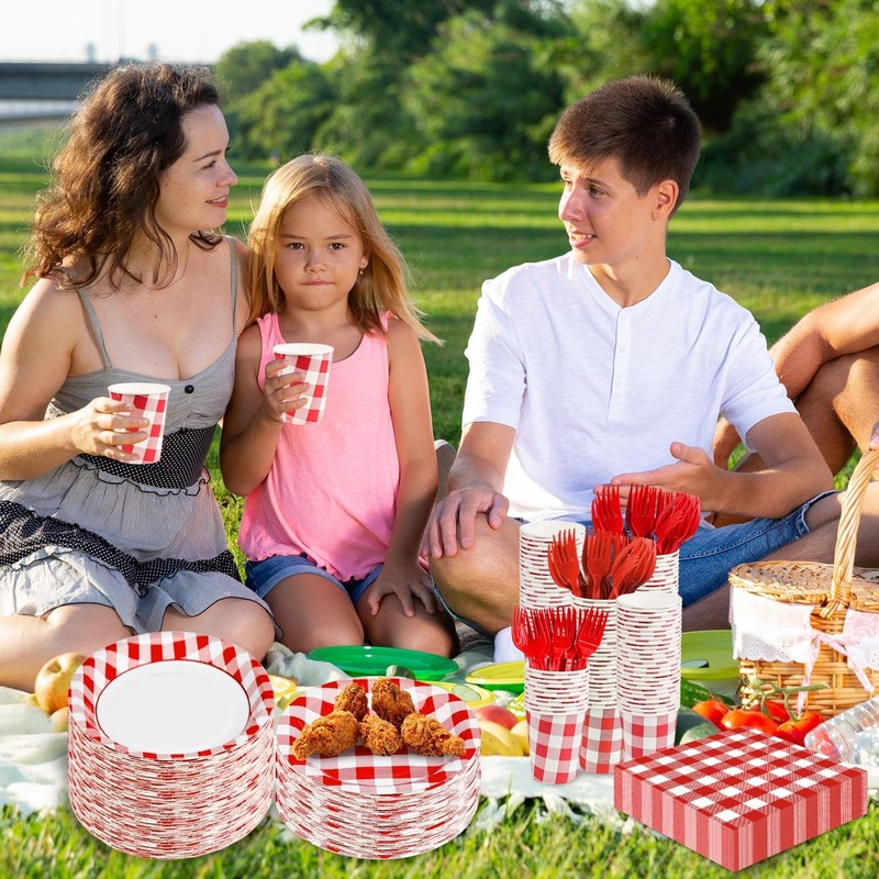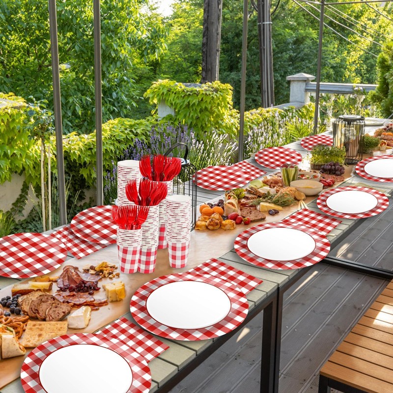 - Wide Application :These red gingham party supplies are a versatile choice to match birthday party and other occasions. This red and white checkered tableware set is an ideal selection for birthday party, baby shower, family dinner picnic barbecue and other holiday celebration for the friends and their family