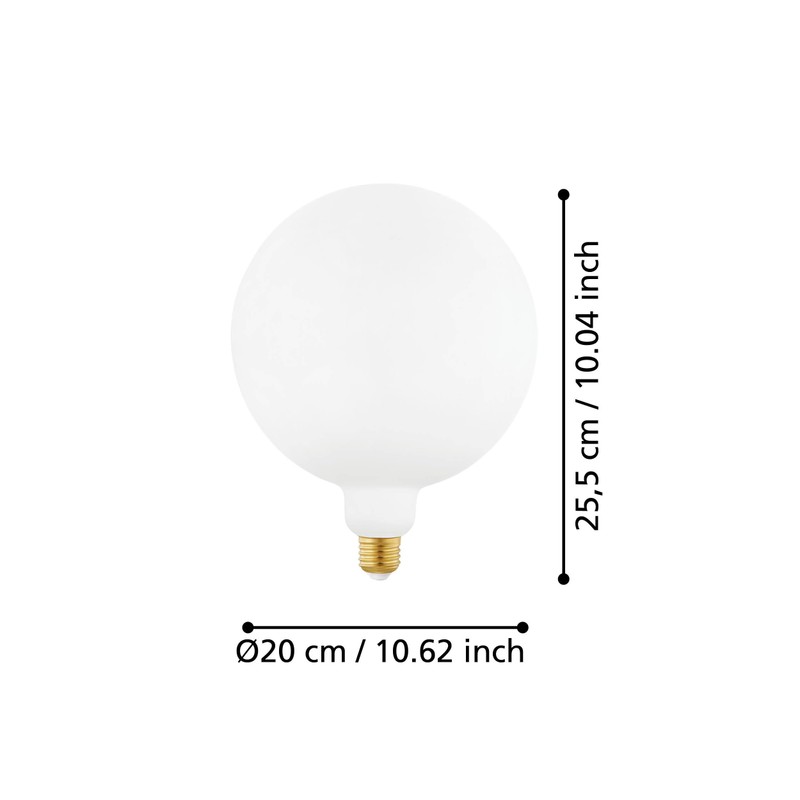 EGLO E27 LED Bulb Dimmable Extra Large Globe Big Size 4 Watt (Equivalent to 25 Watt), Warm White Bulb, 2700 K, Opal White Bulb, G200, Diameter 20 cm