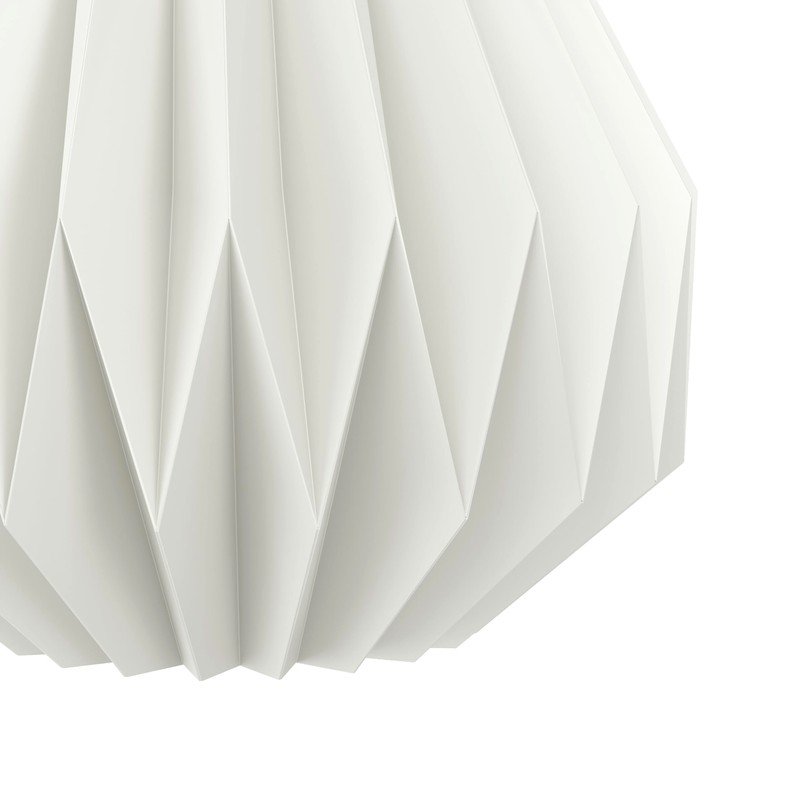 - The dining table lamp features a teardrop shaped lampshade made of white folded paper suspended from a black steel metal hanger and blends seamlessly with modern and Scandinavian furnishings