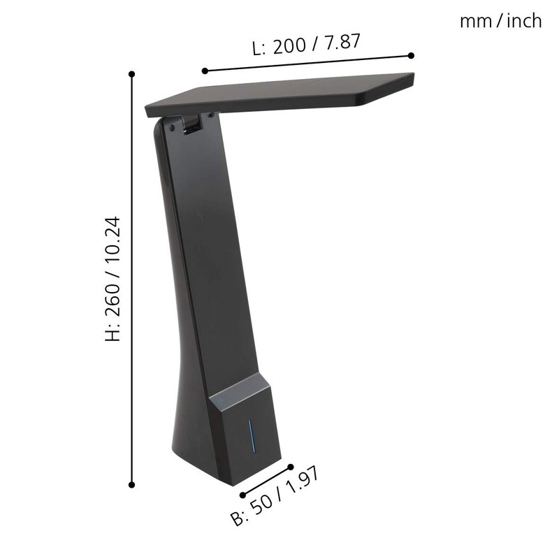 - The LEDs provide pleasant light (1.8 watts, 170 lumens); the desk lamp is battery operated; the power of the Li-ion battery is 1200 mAh; dimensions: height: 26 cm, length: 20 cm, light base: 5 x 7 cm