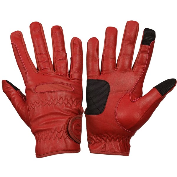 eGlove EQUEST GRIP PRO Leather Touchscreen Horse Riding Gloves (Coral Red, X-Large)