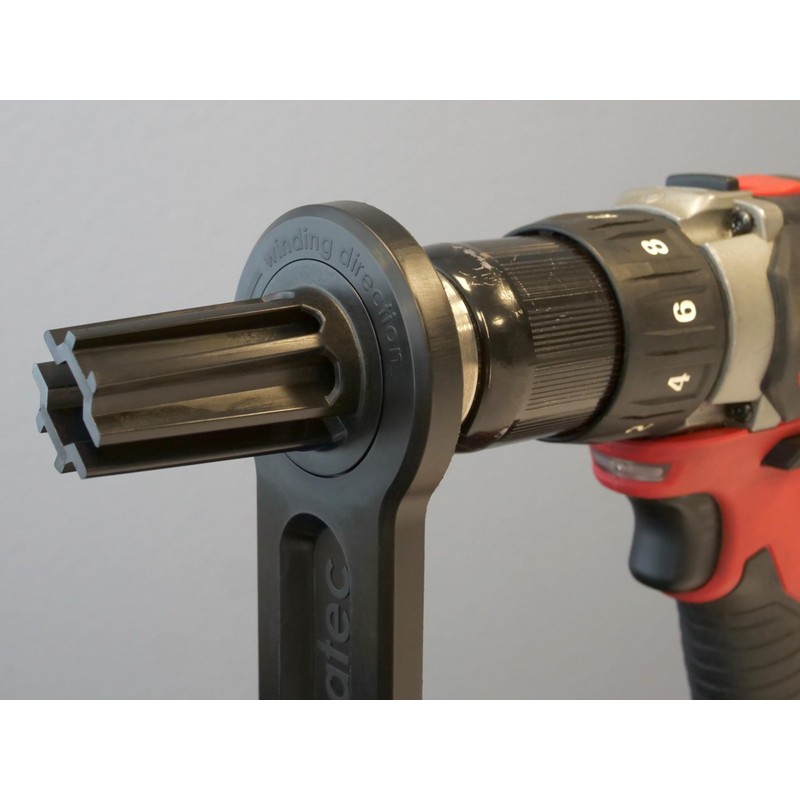 - Easy, quick and clean winding of tension straps using a cordless screwdriver.