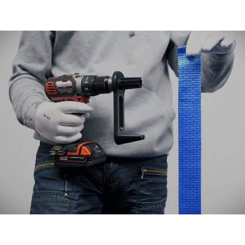 - ✅ WIDE COMPATIBILITY: Fits for lashing straps with a width of 25mm to 50mm, suitable for versatile use. Drill chuck span at least 12 mm