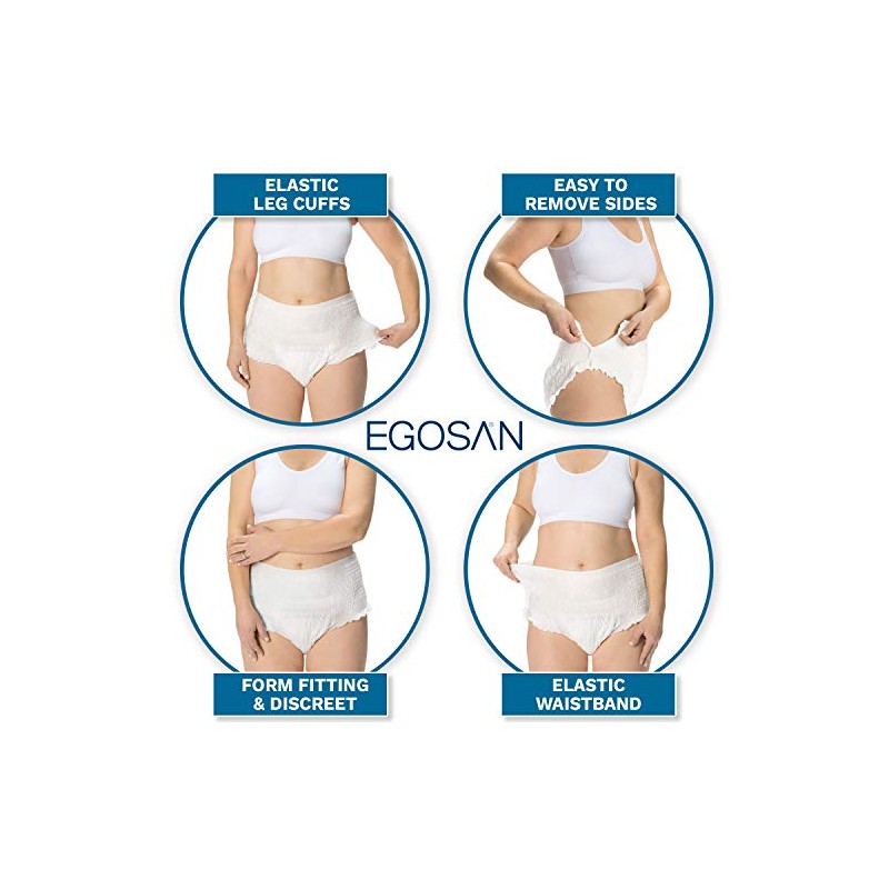 - 84 EASY TO USE & LIGHT WEIGHT UNDERWEAR – Egosan pullups for adults Includes a breathable outer cover and high absorbency for the best security and total protection. A lightweight “non-woven hypoallergenic fabric” provides a natural comfort that discreetly shapes to your body for comfortable fit unlike ANY other underwear