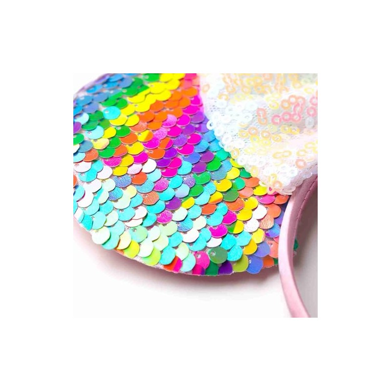 EGSHUFU Mouse Ears Headband, Mouse Ears Gift for Women Girls, Sequin Bow Headband Role Play Accessories Party Decorations(Rainbow)