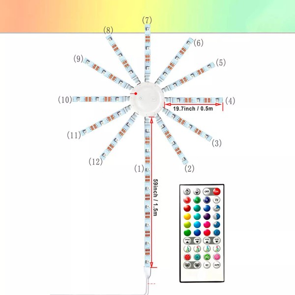 -Luz de fuegos artificiales de color: la luz de fuegos artificiales consta de 11 barras de luz de 0,5 m, 1 barra de luz de 1,5 m y placa de conexión. Equipado con 210 abalorio de luz LED, la barra de luz de sincronización de música te traerá efectos visuales únicos.