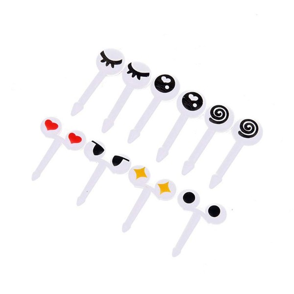 Egurs 10 Pieces Children's Cute Fruit Fork Cartoon Eyes Pattern Plastic Food Fruit Picks Lunch Box Accessories